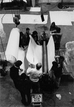An action related to the exhibition Raumfluss at Bahnhof Westend in Berlin, in 1992,